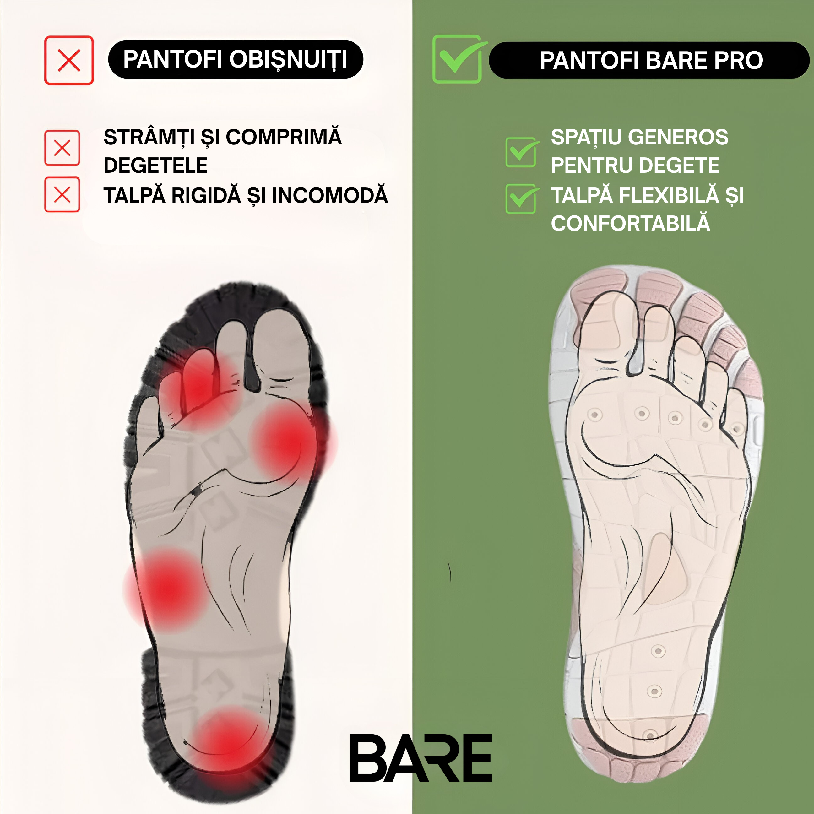 ✓ Multifuncțional - Natura ușoară și respirabilă a pantofilor BARE îi face alegerea ideală pentru purtare zilnică, oferind confort și suport pentru o gamă largă de afecțiuni ale piciorului.